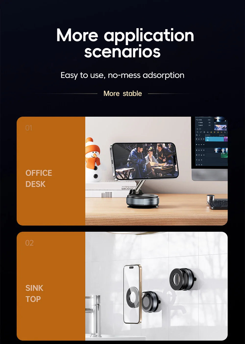 The unique selling points of this product are its magnetic feature and foldable design. The powerful magnets in this holder ensure that your phone stays securely in place even on bumpy roads, while the foldable design allows for easy storage when not in use. Say goodbye to bulky phone mounts that clutter your dashboard or kitchen counter - the NoEnName_Null holder is sleek, compact, and practical.